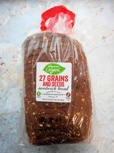 At some point, honey started creeping in to nearly all of the bread options I could find at Wegmans, and I don't know why. But this one is still vegan. I'm really used to the way grain-and-seed bread tastes and feels now, so I don't know what I would have thought of this when I was still commonly eating white bread, but as for now I like it! And that's good, because at my Wegmans, it's literally the only sandwich bread available for a vegan except plain white bread.